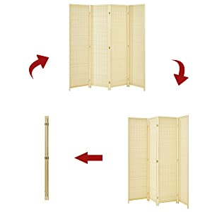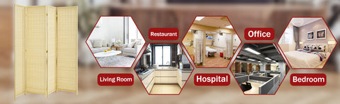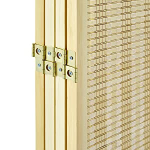 This folding room divider premium 9 dual two-way hinges, the 4 panels are able to create a wall that blocks the view without any gap. The use of hinges allows the screen to fold up when not in use and saving space. The high quality hinges ensures the panels to fold and open smoothly.