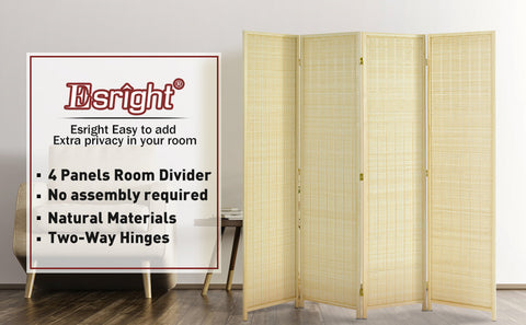4 Panel Bamboo Room Divider, 6 Ft Tall Folding Privacy Screen Room Divider, Freestanding Partition Wall Dividers for Office,Bedroom, Beige