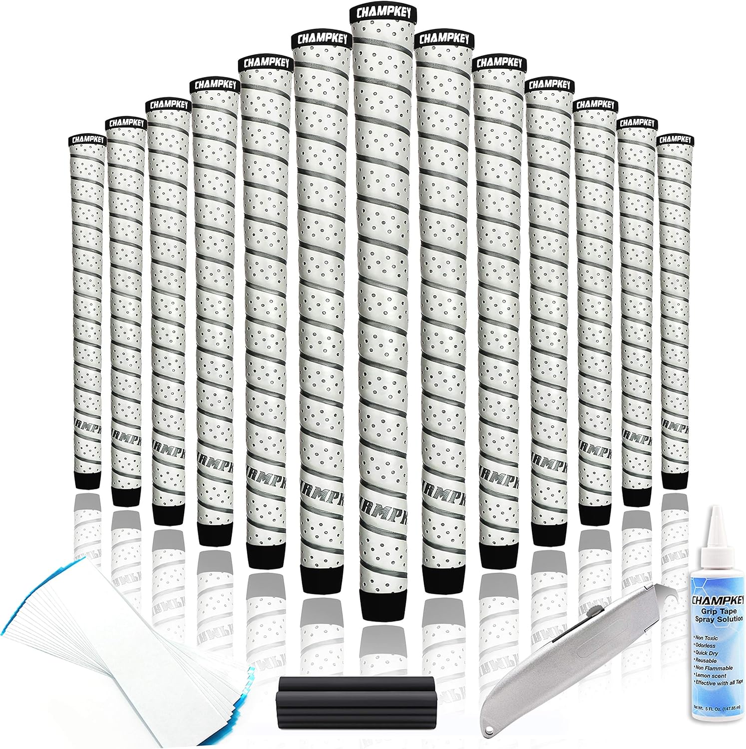 Champkey Polyurethane Golf Grips 13 Pack | Come with 5 Oz Solvent,Hook Blade,15 Tapes & Vise Clamp | All Weather Performance Golf Club Grips