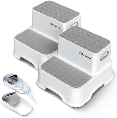 COOSEYA 2 Step Stools for Kids,Toddler Step Stool for Bathroom Sink,No-Slip Double up Step Stool for Toddlers Bathroom, Multifunctional Toilet Step Stool for Kids,Toilet Potty Training(2 Packs)