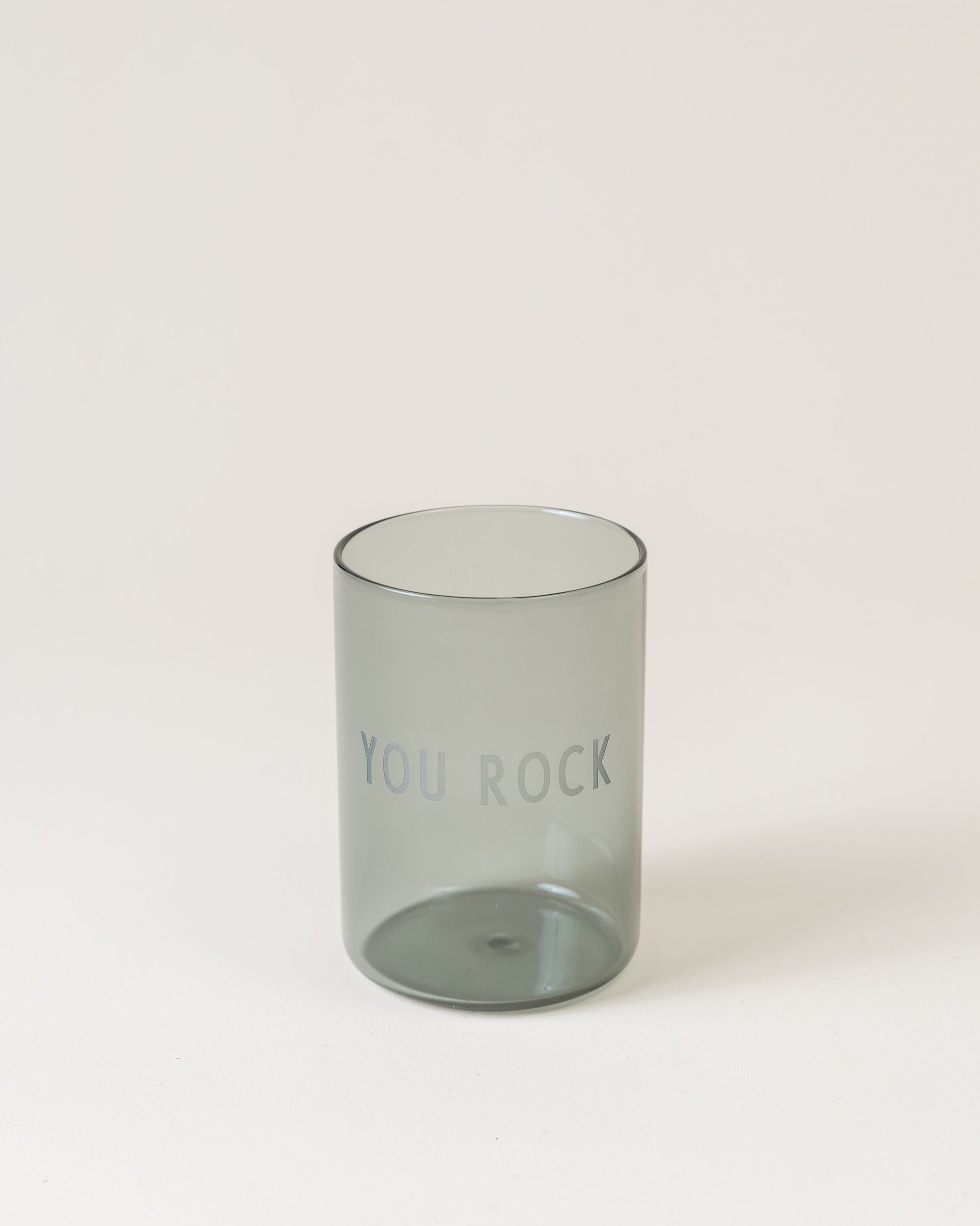 Make your drink look pretty with this Favourite Drinking glass by Design Letters. A smoky grey with the words 'you rock' engraved on the front.