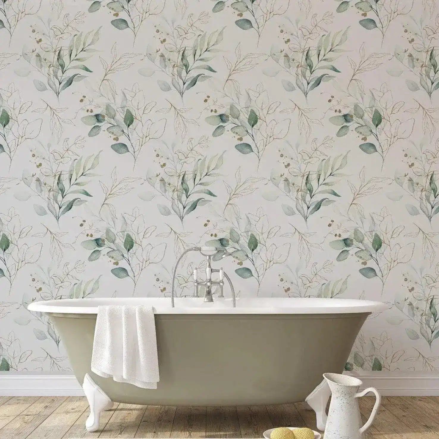 - The fantastical scene in our Green Eucalyptus Leaves and Branches Wallpaper Mural is brimming with life, featuring a collage of green eucalyptus leaves and branches.