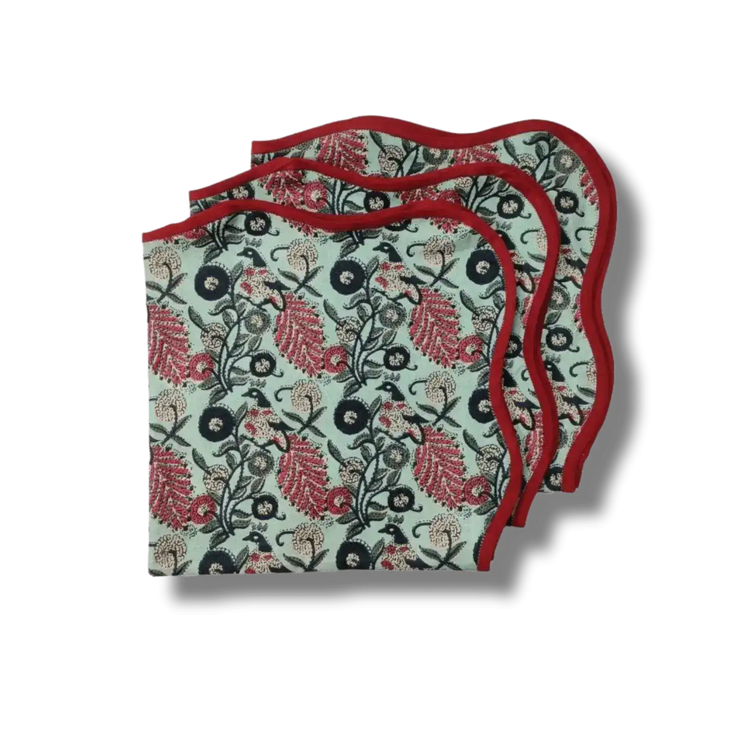 - Our Green Floral Motif Block Printed Cotton Napkins are great for everyday reusable use, casual dining, or would make a lovely gift! The napkins are pre-washed, have Piping corners, and are ready for use.