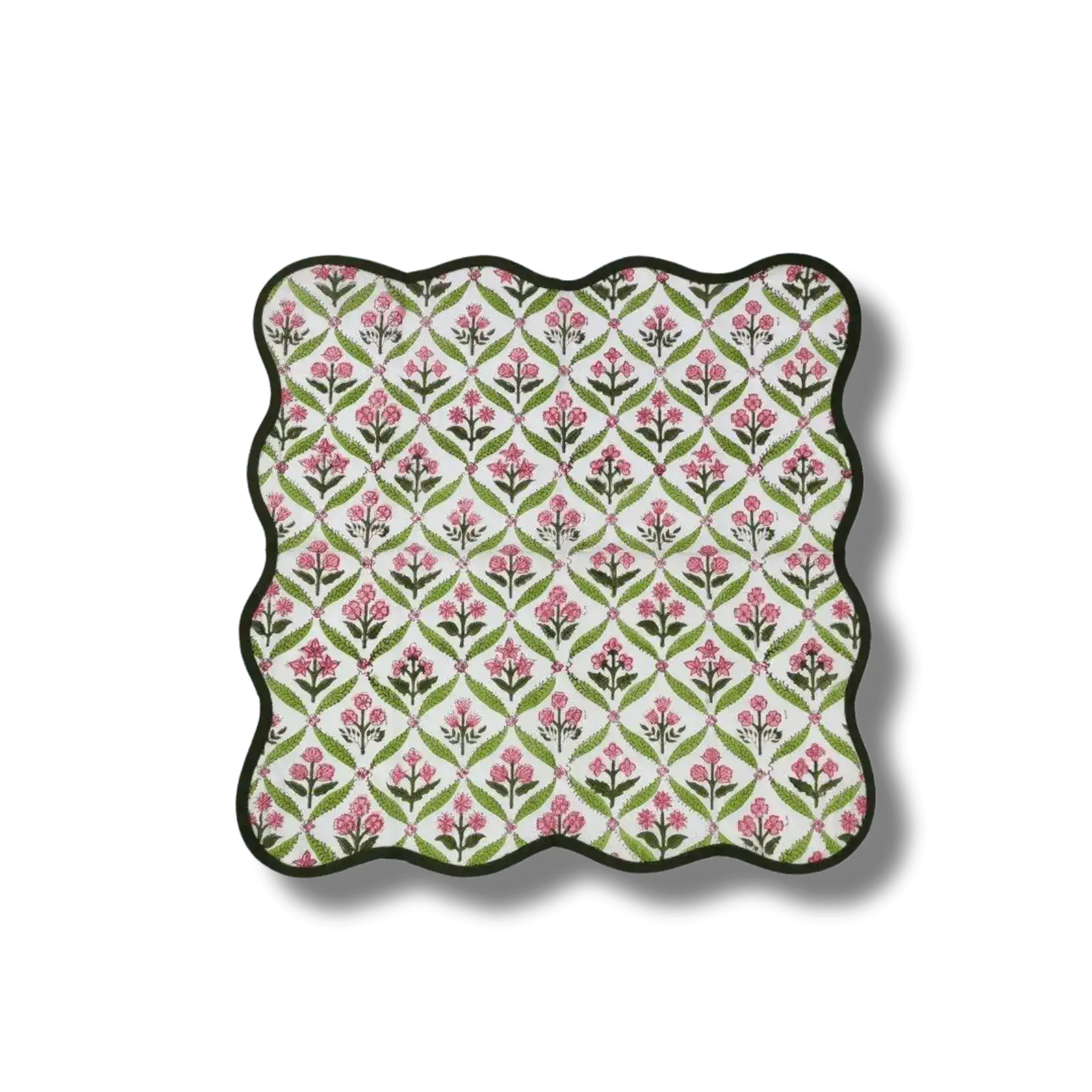 Hand-Block Print Dark Green Piping Scallop Cotton Napkins