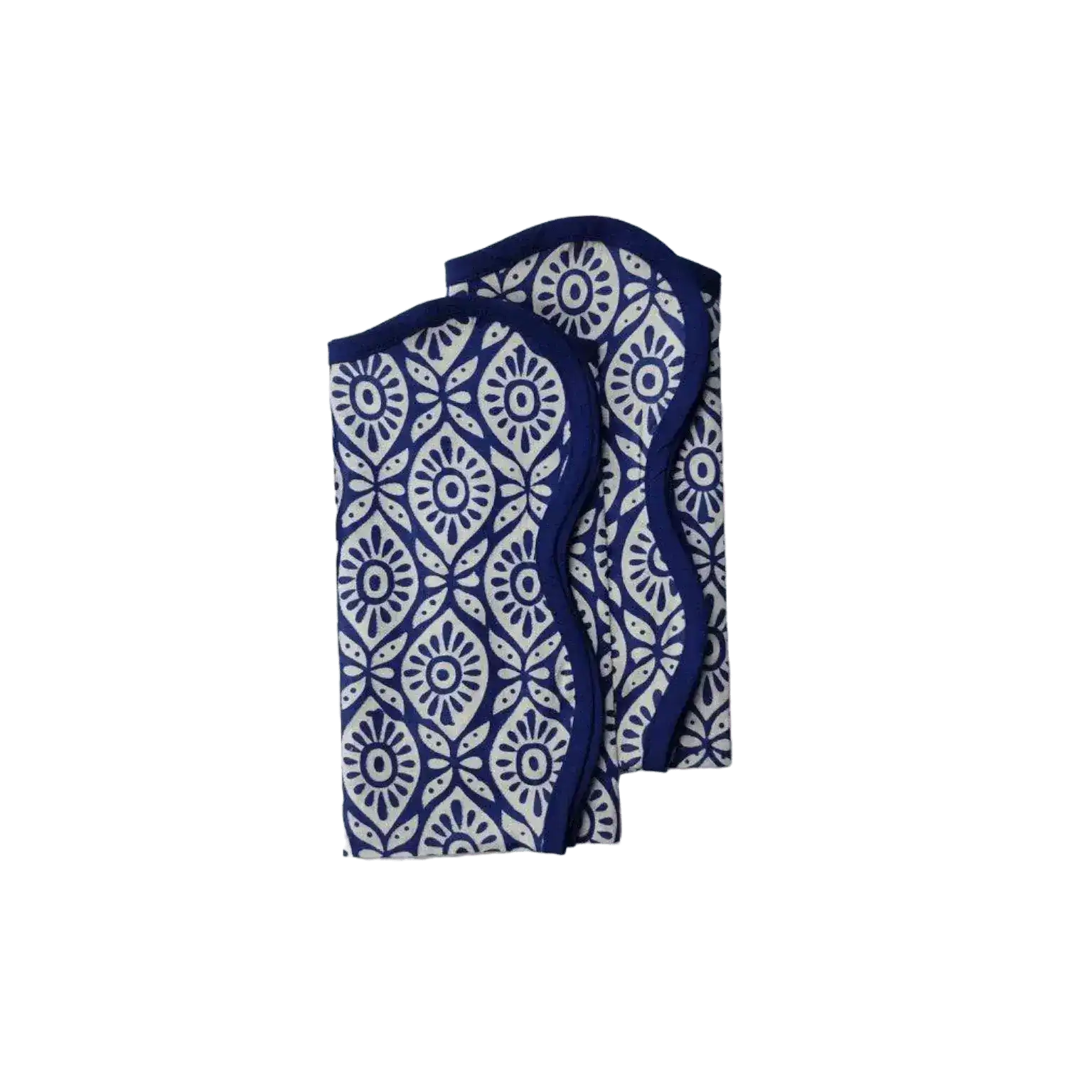 - Hand Block Printed Eyelet Blue Cotton Napkins are for everyday reusable use, casual dining, or would make a lovely gift! The napkins are pre-washed, have Piping corners, and are ready for use.