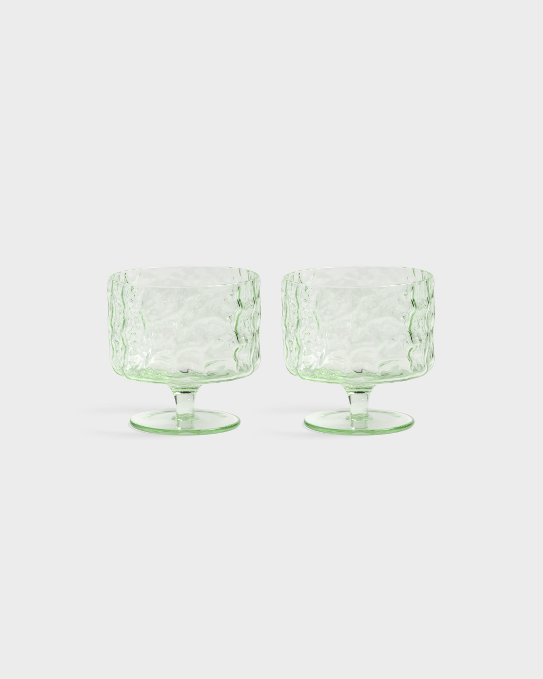 The &K trunk coupes, made from solid glass, are perfect for a glass of champagne or to fill with your favourite ice cream. Stylish, colourful and durable, the trunk-shaped glasses are a wonderful addition to any dinner table or drinks party.