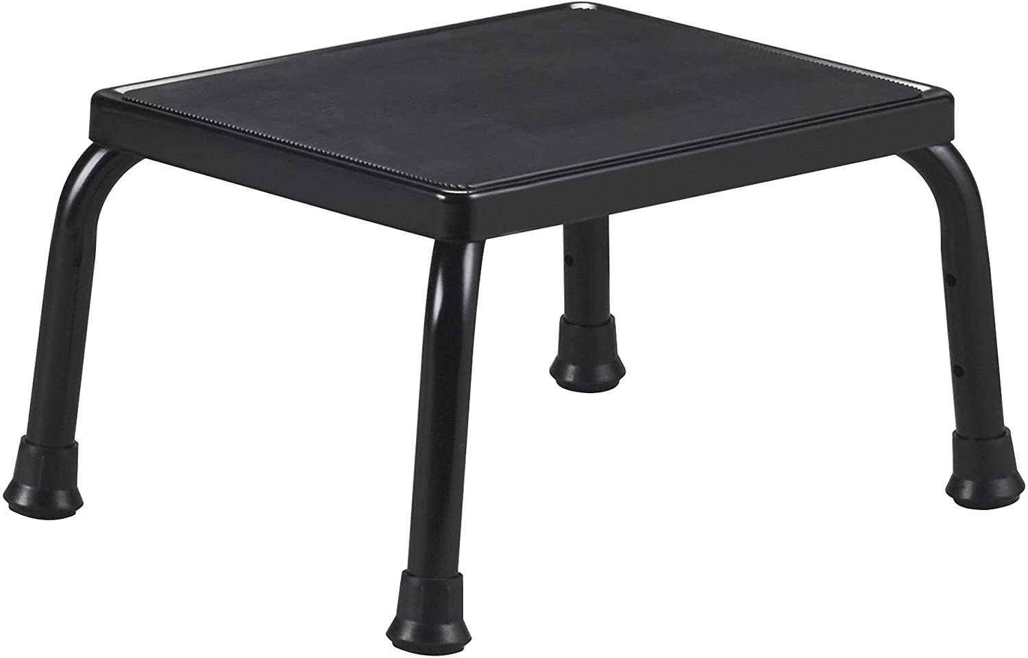 The McKesson Step Stool Powder Coated Steel is ideally suited for kitchens, bathrooms, bedside, exam rooms, X-ray, patient rooms or any area where sturdy support is required. - Chrome-plated, 18 gauge steel for durability. Skid-resistant rubber mat for safety. Weight Capacity: 350 lbs. Not made with natural rubber latex.