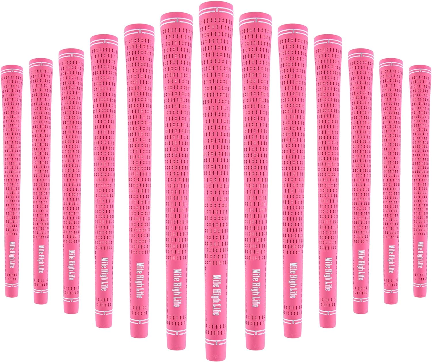 Mile High Life Golf Grips | Standard Golf Club Grips | 3 Pack or 13 Pack Golf Grips Bundle | Entry Level Rubber Golf Grip for Men, Women, Juniors(13 Pack Pink)