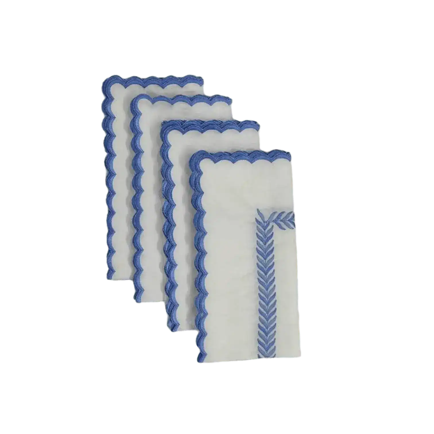 Mini Scalloped White Cotton Napkins with Embroidered Borders