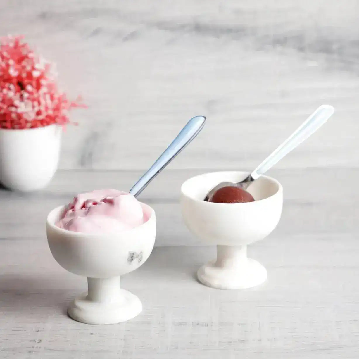 Natural Hand Carved Makrana Marble Desert Bowl - 2 pcs
