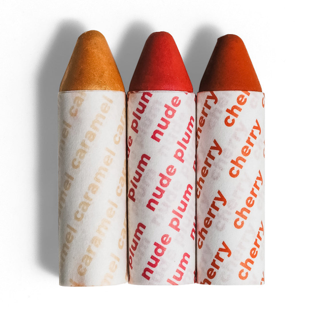 This set features crayons Caramel, Nude Plum, Cherry for a warm, earthy vibe.