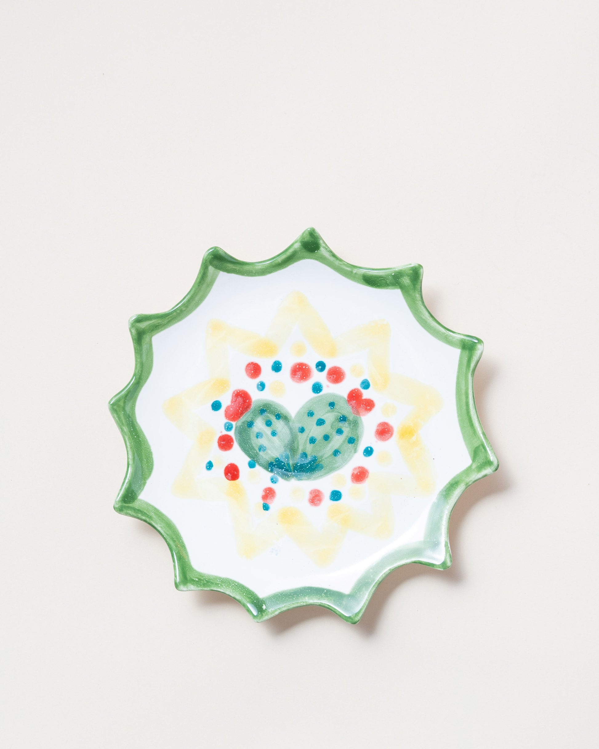 Bring a touch of Italy to the table with this beautiful dessert plate by Patrizia Italiano adornded with a crown of beautifully painted cactuses. Save for summer or use all year round for a pop of fun and warmth to your lunch or dinner table.