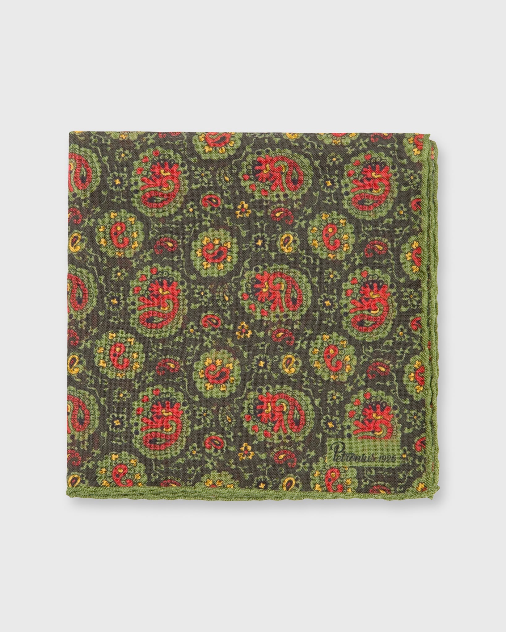 Hand-Rolled Pocket Square in Loden/Red Paisley
