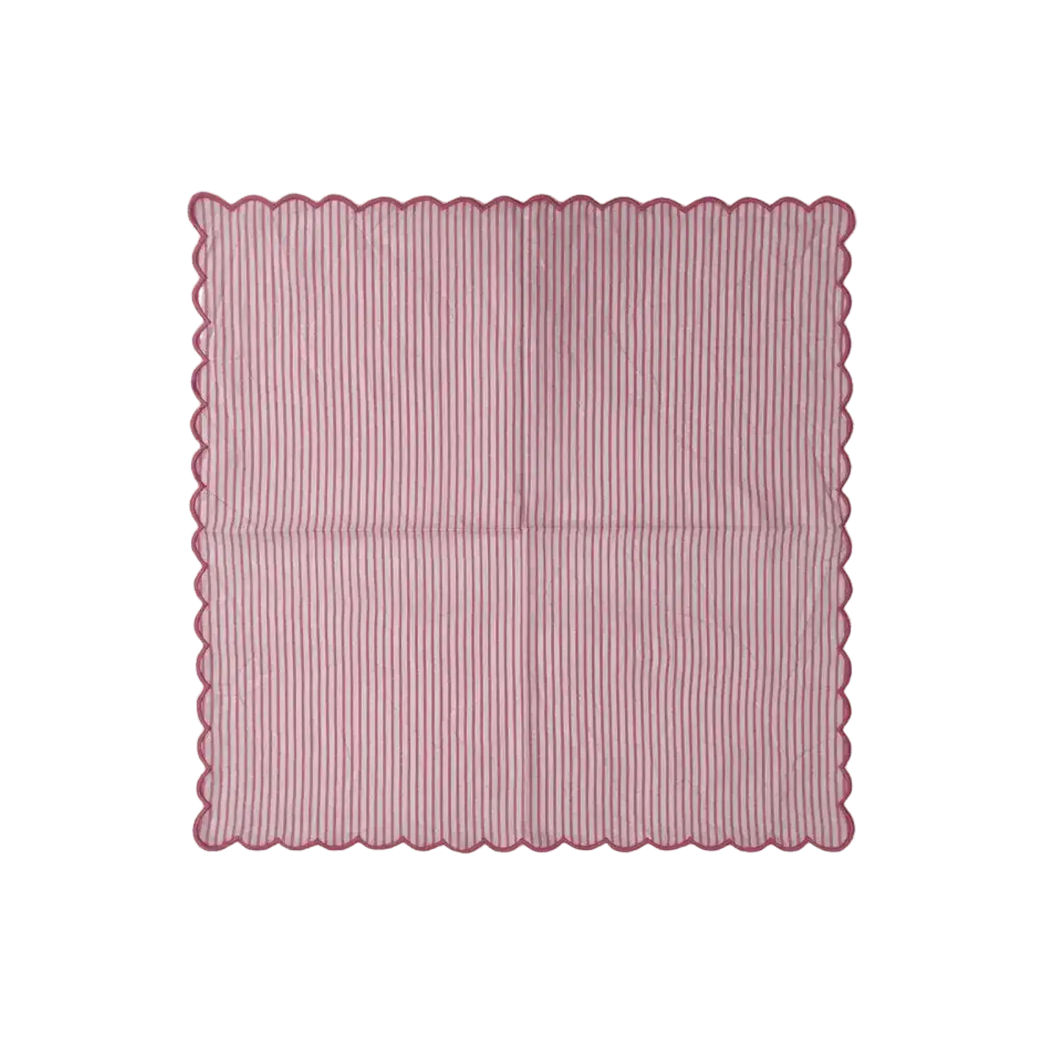 Punch Pink Stripes on White Scalloped Cotton Napkins