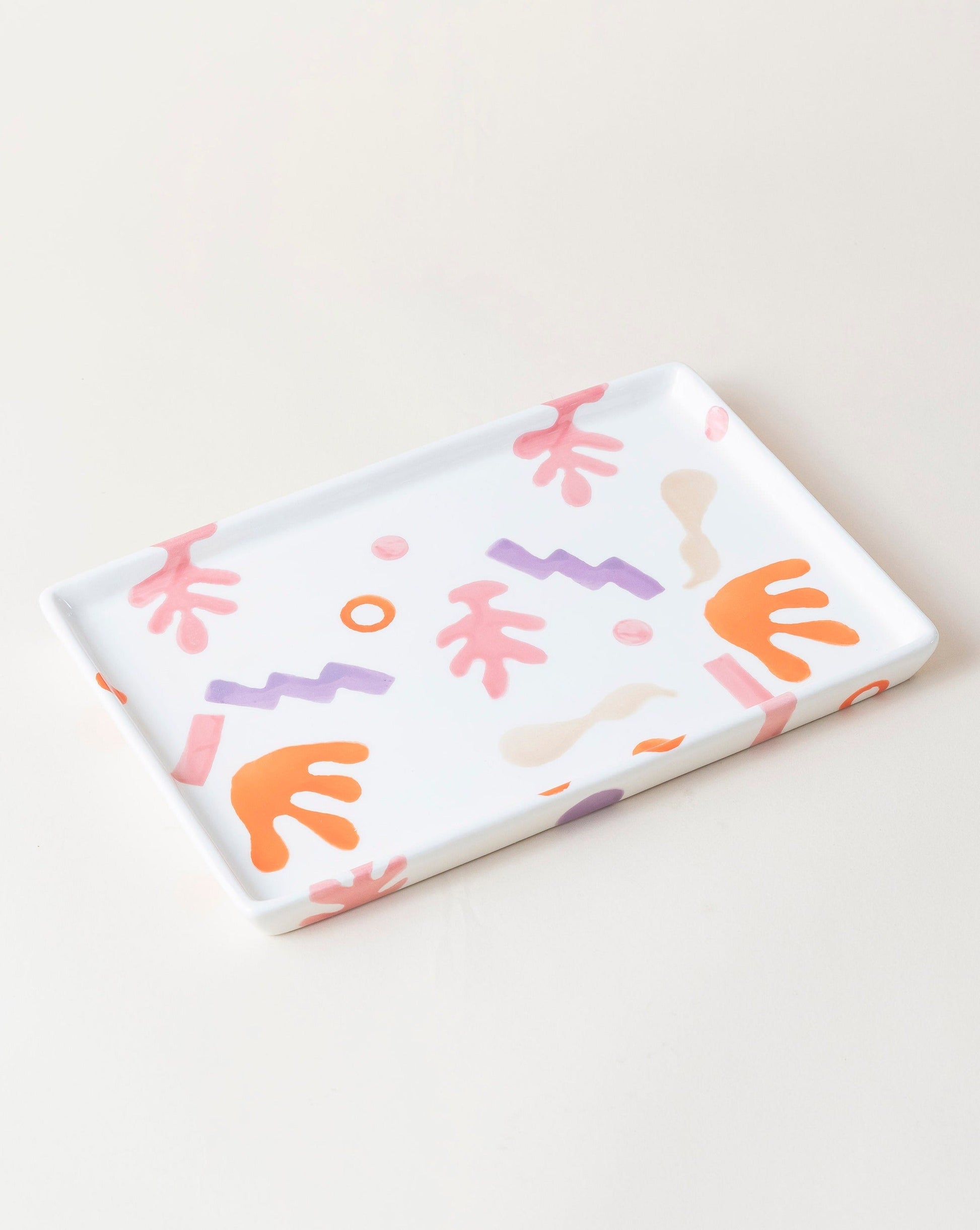 The Alejandro tray by Que Rico is so much more than just a practical piece of homeware. It's white ceramic background is dotted with red, pink, purple, and beige shapes to create their Funky Fiesta pattern. Bold and beautiful it'll add a good dose of fun to any room it's used in, whether practically or not.