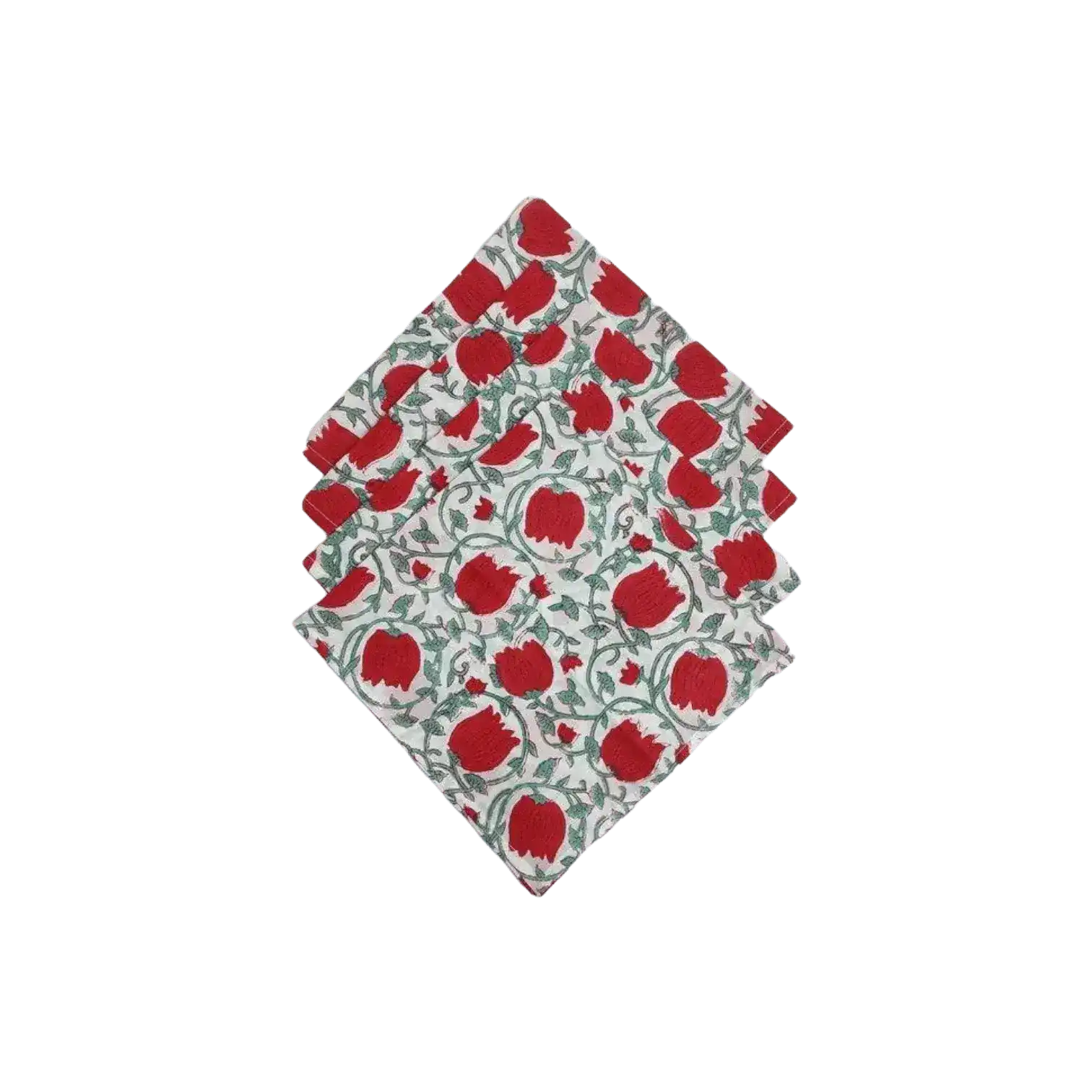 Our Red Floral Indian Block Print Cotton Napkins are a great way to bring a pop of color and character to parties and get-togethers. Made from cotton, it's extremely soft and so pleasant to the skin. An Eco-friendly and stylish choice for your dining table or kitchen. Ideally to get set. The low-luster finish makes these great for both formal dining and daily use.