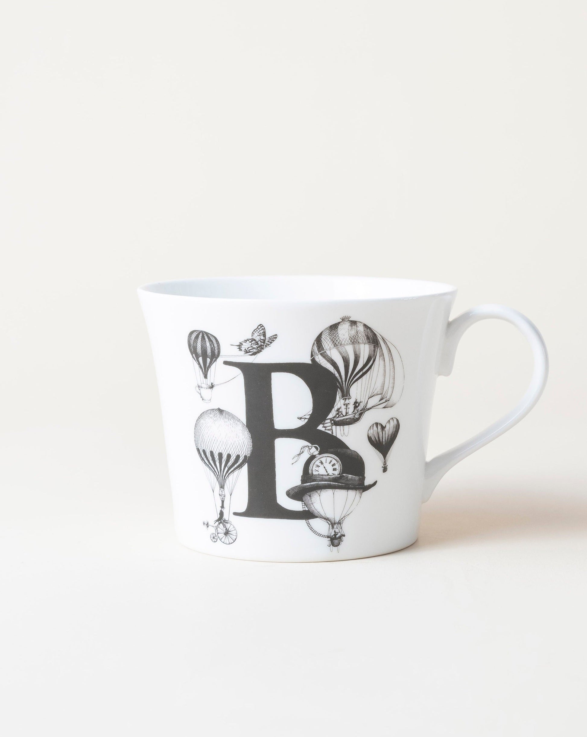 B for balloons! Celebrate the alphabet with Rory Dobner's mighty mug. Made of fine bone china and featuring one of Rory's signature intricate illustrations - this one of magical and fantastical hot air balloons. With it's 22kt gold edge rim it makes a lovely gift or just as one to add to your own collection. It's heat proof, microwavable, and dishwasher safe too!