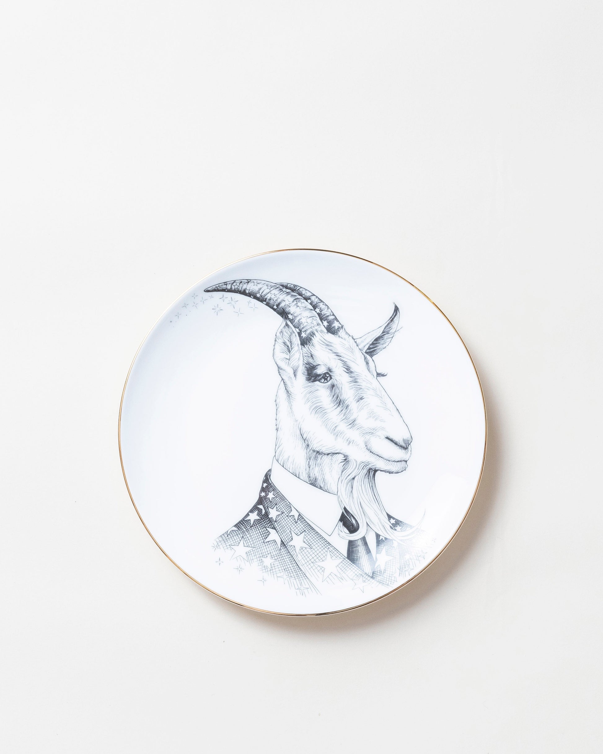 This fine bone china plate by Rory Dober gives a playful nod to the capricorn zodiac. With Rory's classic 22kt gold edge rim and his signature intricate illustration - this one of a ram's head - it's the perfect gift for the capricorns in your life. Use it for long lunches, delicious dinners, or hang on the wall as a piece of art in it's own right.