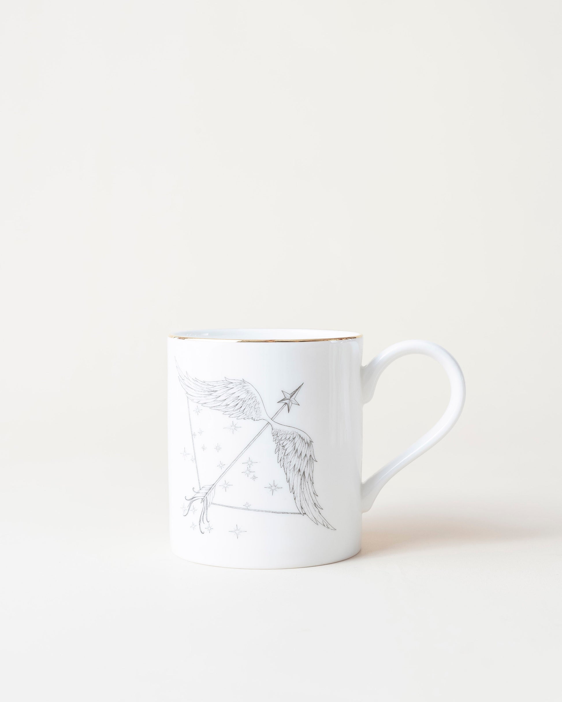 This fine bone china mug by Rory Dobner gives a playful twist on the sagittarius zodiac, featuring one of his signature ink illustrations this time of a feathered bow and arrow. The simple shape and clean colours are balanced in boldness with the 22kt gold edging on the rim. The perfect gift to the sagittarians in your life or one to add to your own collection.
