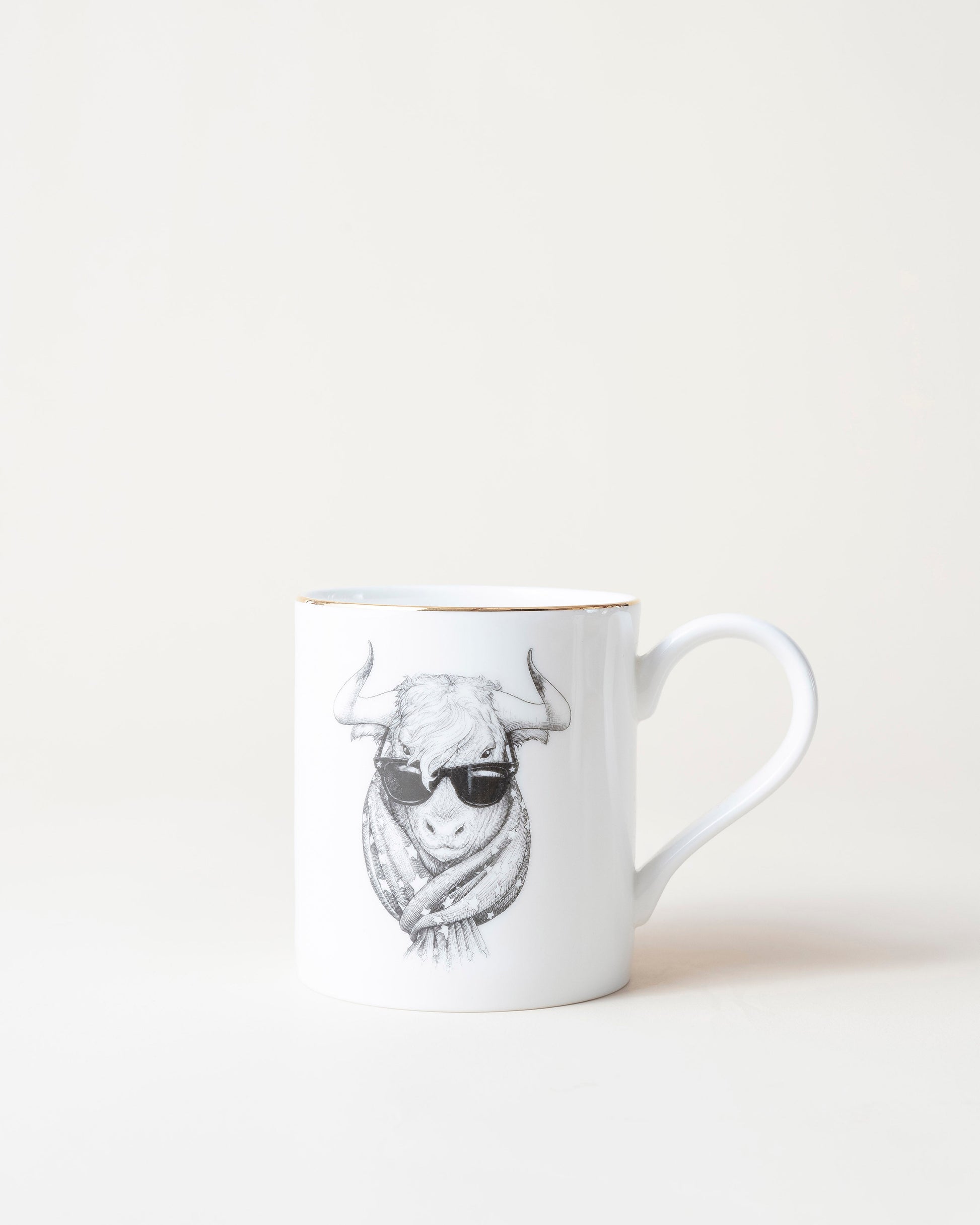 The taurus zodiac sign is celebrated with this fine bone china mug by Rory Dobner, featuring his signature ink illustration of a bull's head wearing shades and a scarf, of course. The simple shape and clean colours are balanced in boldness with the 22kt gold edging on the rim. The perfect gift the taurus' in your life or one to add to your own collection.