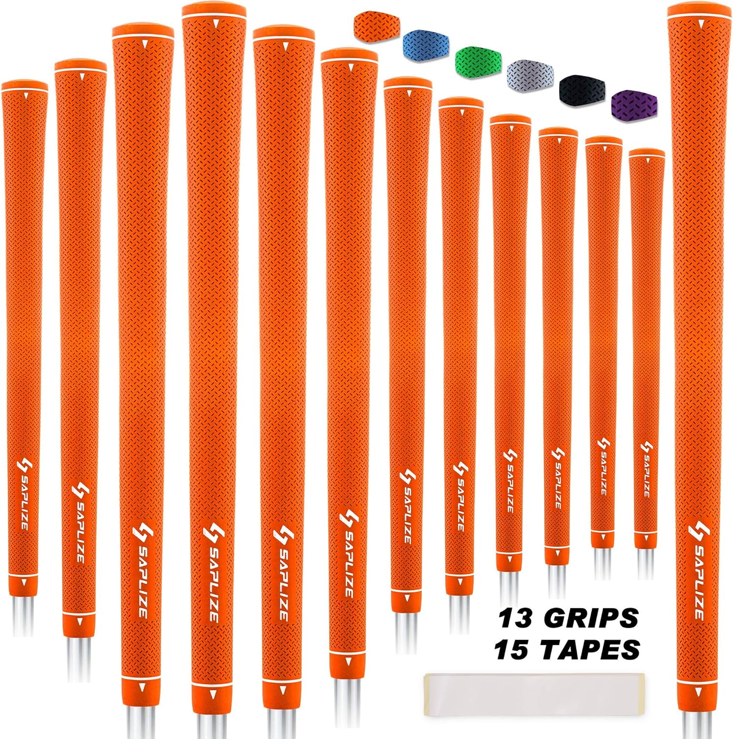 SAPLIZE CC02 Rubber Golf Grips, Options of Upgrade kit(13 Grips with 15 Tapes) or Deluxe Kit(13 Grips with Solvent kit) 6 Pure Colors Available, Standard/Midsize Anti-Slip Rubber Golf Club Grips