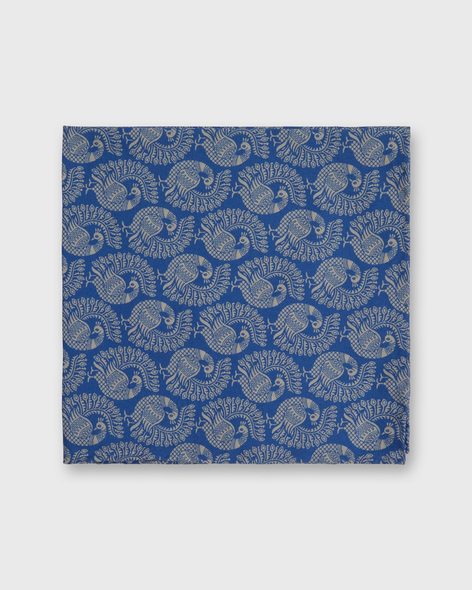 Cotton Print Pocket Square in Blue/Bone Peacock