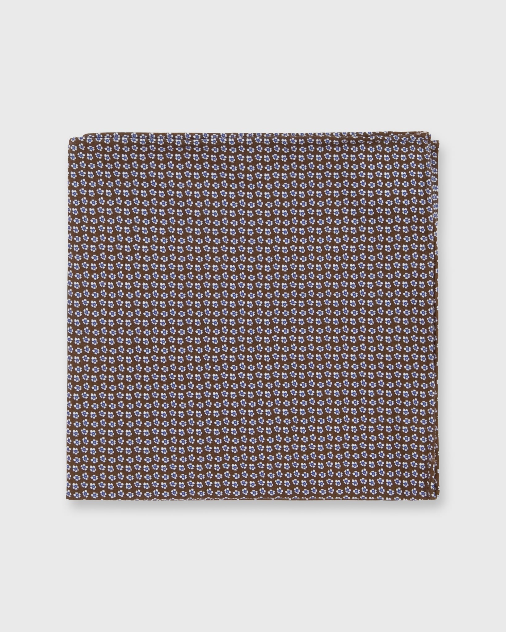 Cotton Print Pocket Square in Brown/Blue Tiny Floral