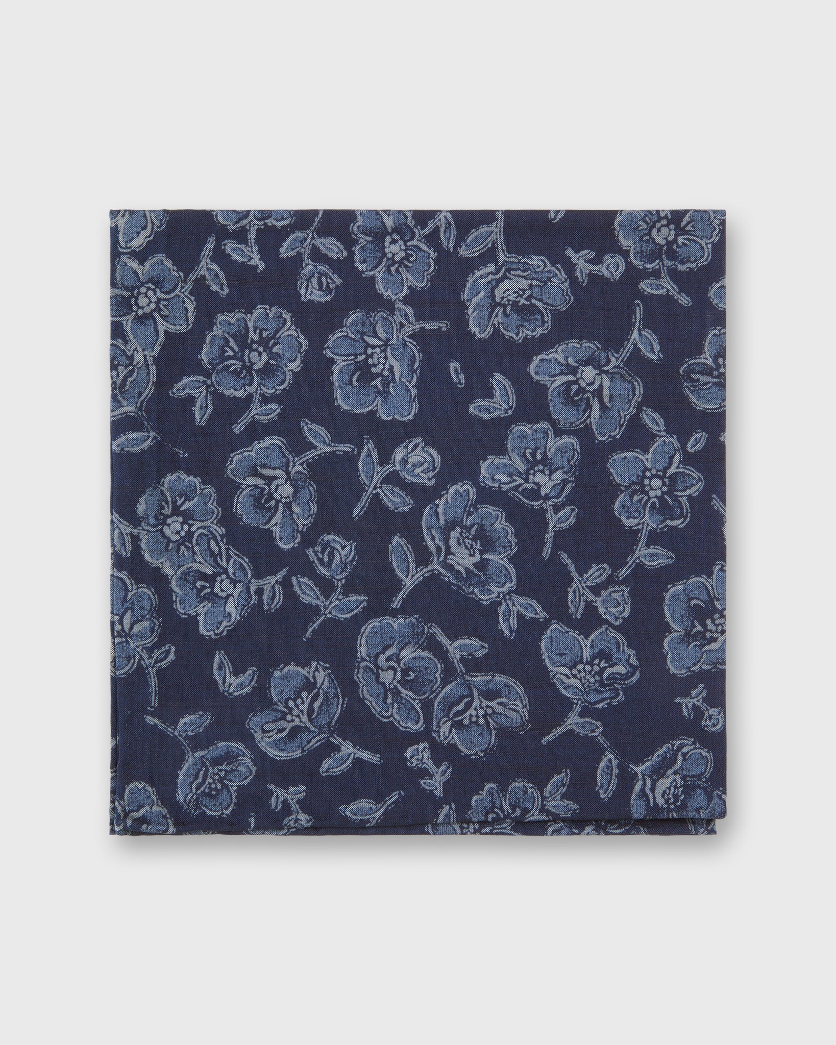 Cotton Print Pocket Square in Navy/Slate/Grey Floral Print Poplin