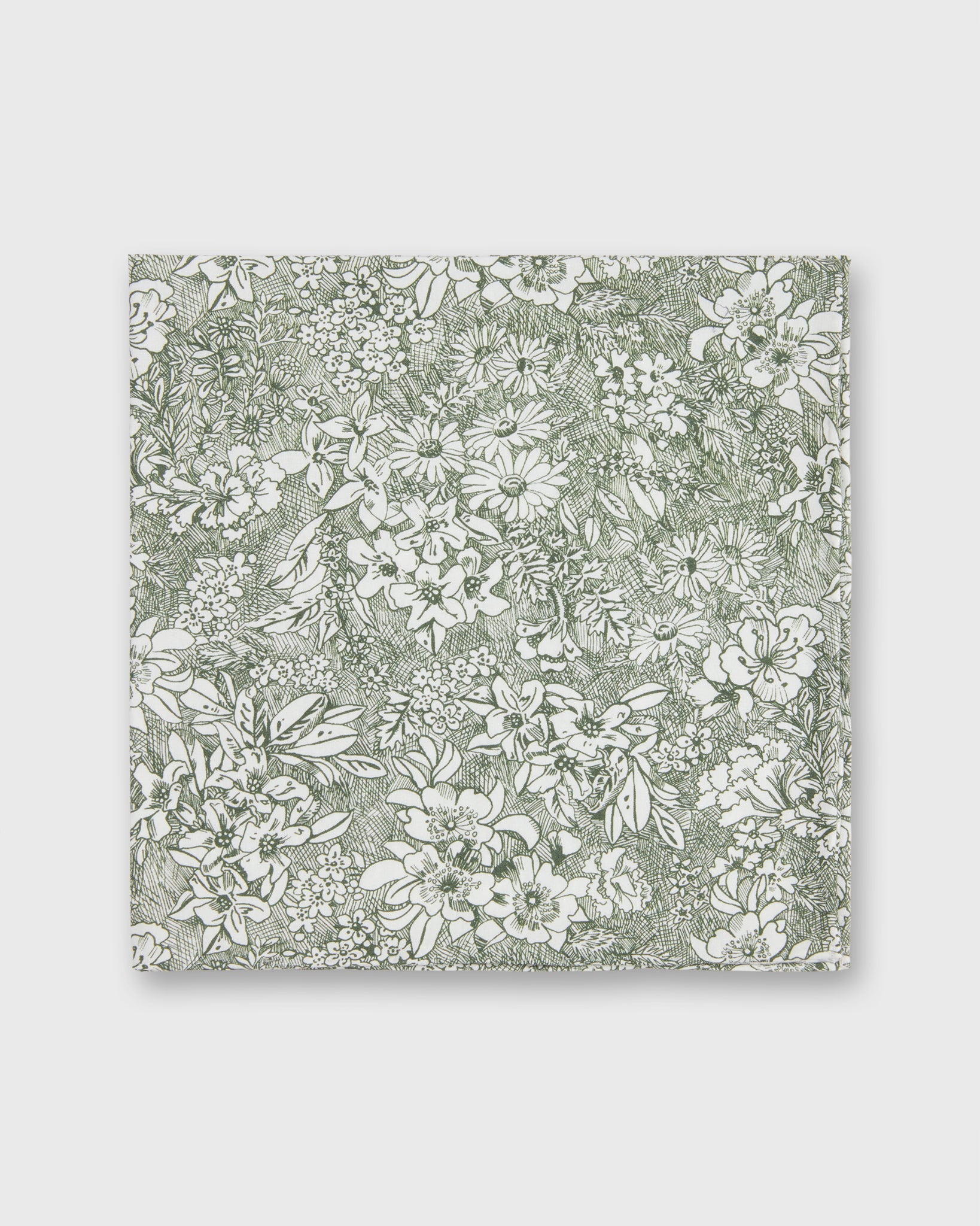 Cotton Print Pocket Square in Olive/Ivory Orlando Liberty Fabric