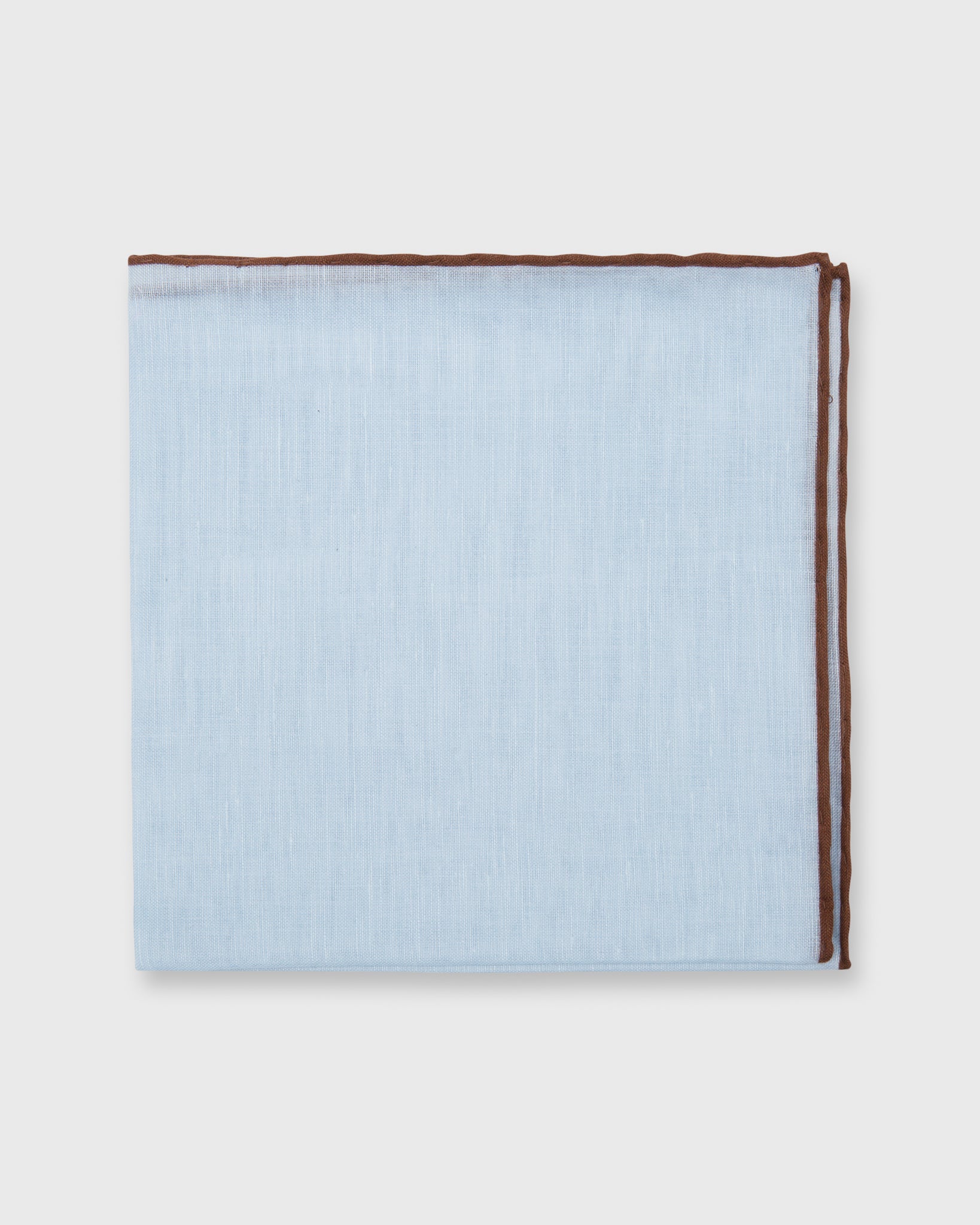 Hand-Rolled Pocket Square in Sky Cotolino/Brown Edge