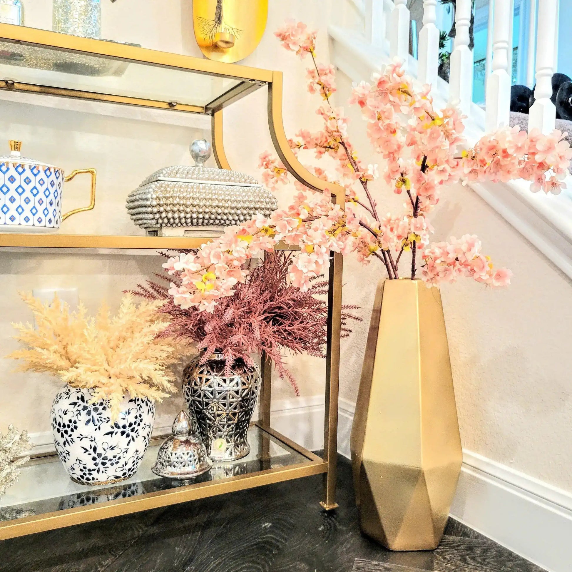 Beautiful Silky Pink Cherry Blossom branches will bring a smile to your face while keeping the feeling of spring fresh in your home throughout the year! Add these blooms to floral arrangements, or simply style a bundle of several stems in your favorite vase. This pretty stem with dainty flowers and earthy branches is perfect for accentuating centerpieces, bouquets, and tabletop displays.