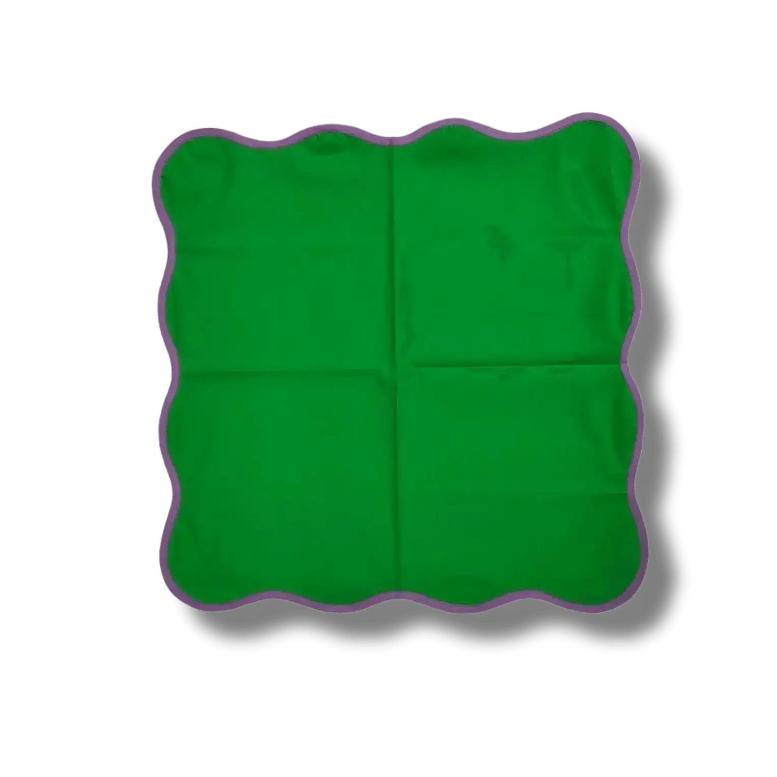 - A garden color delight! Our Square Scalloped Cotton Napkins are cute and colorful featuring green flowers on natural fabric napkins. These are sold in a set of 4 and handmade from 100% cotton fabric. Using reusable cloth napkins of any size is a great way to reduce store-bought paper napkin usage and help our earth, sustainably.