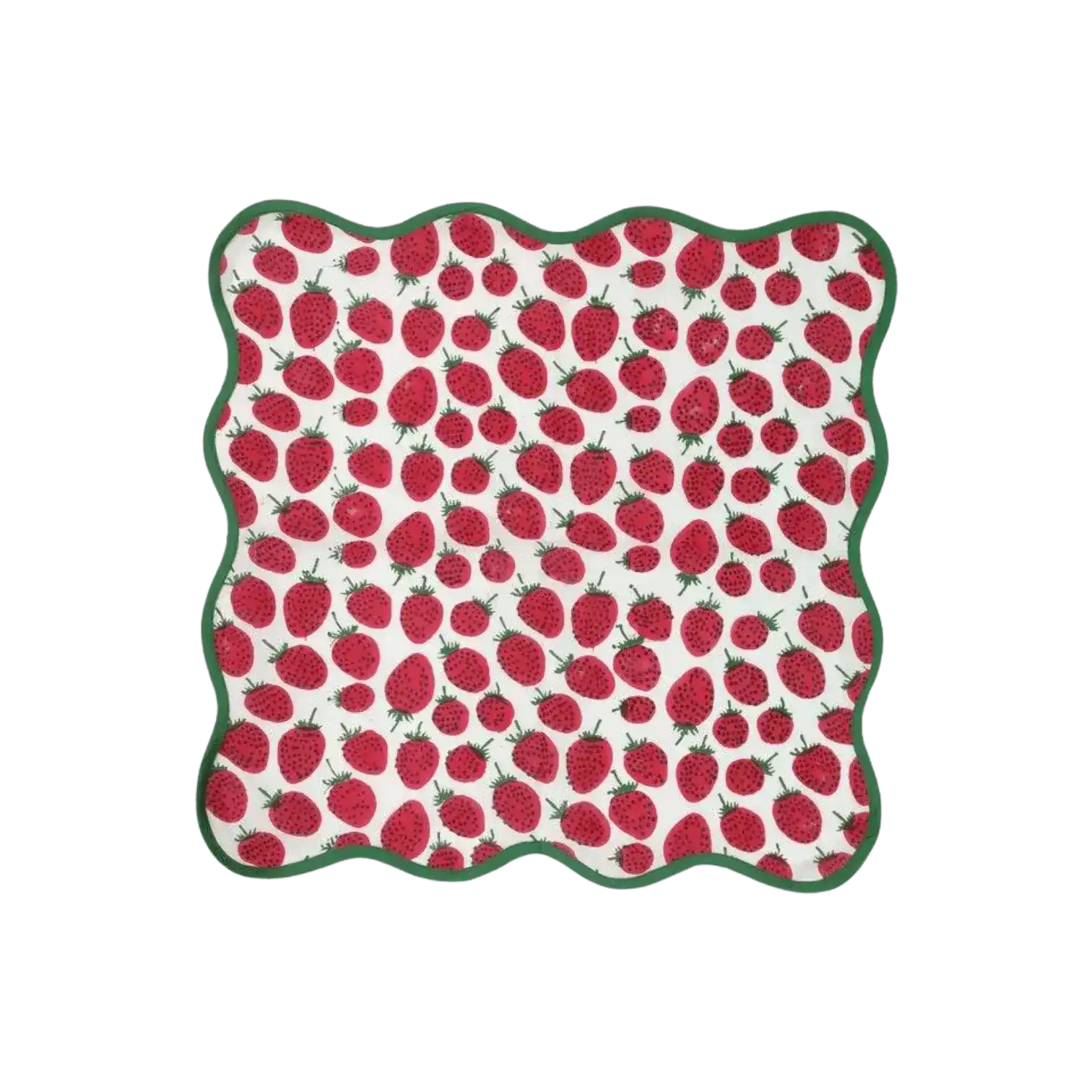 - Our Strawberry Hand Block Printed Cotton Napkins with Embroidered Trims are for everyday reusable use, casual dining, or would make a lovely gift! The napkins are pre-washed, have Piping corners, and are ready for use.
