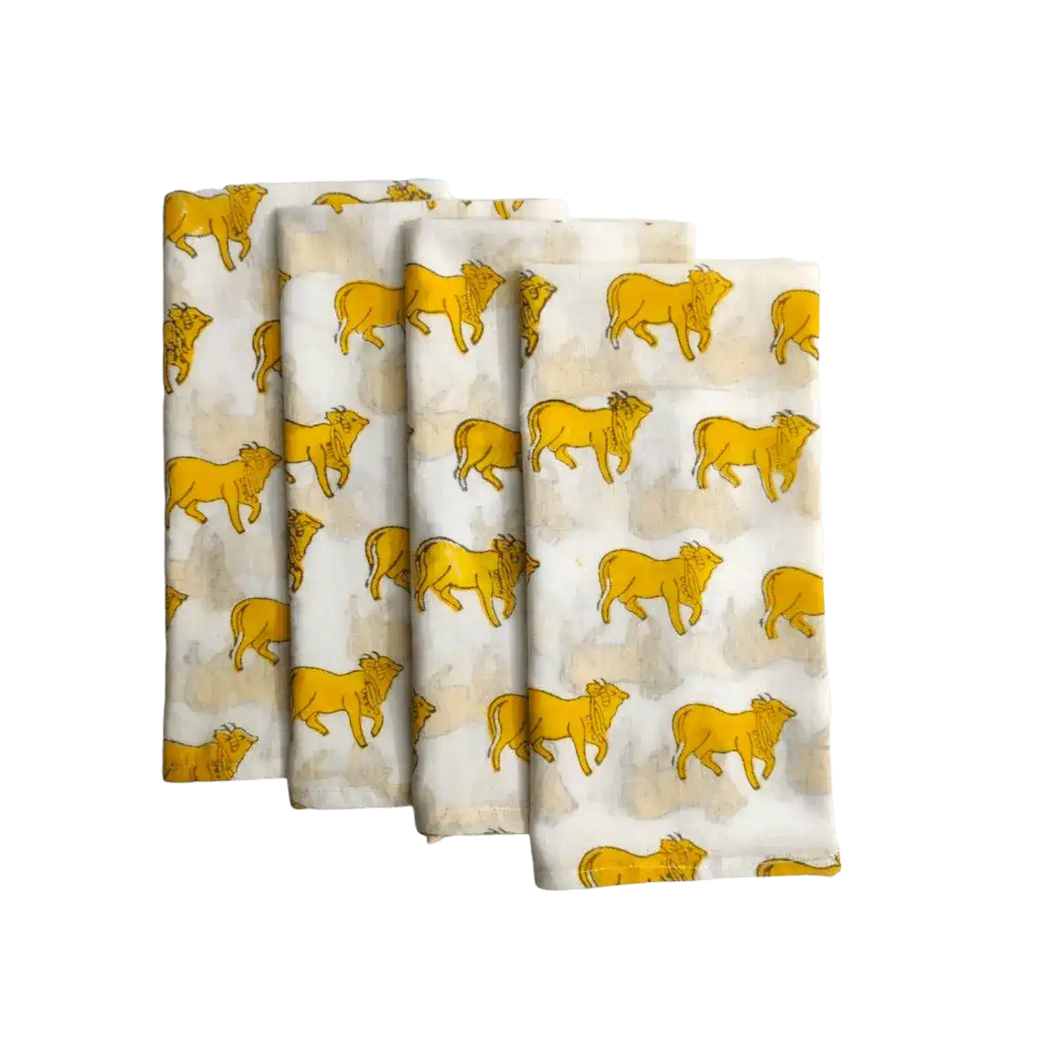 Our Yellow Cows Block Printed Cotton Napkins are a versatile cloth every home should have! They can be used as a table decoration, in the kitchen to dry dishes, or as a colorful way to wrap warm rolls of bread in a basket at mealtime.